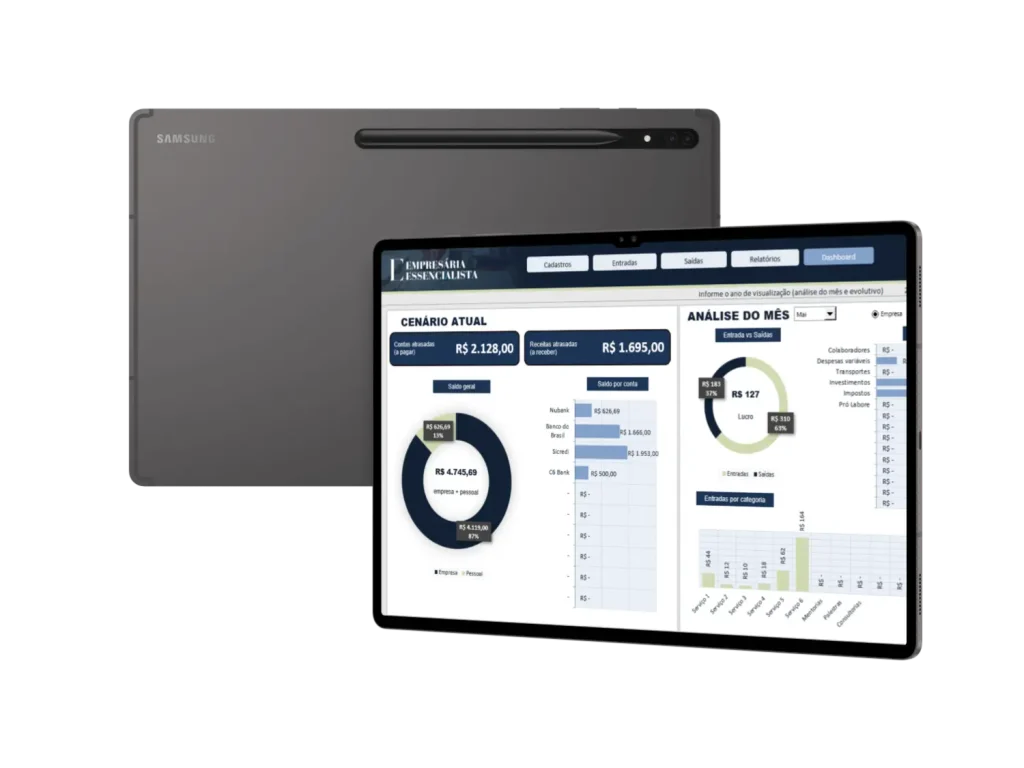 Uma planilha de controle financeiro pessoal e empresarial 100% pensada pra quem empreende sozinha — com relatórios automáticos, visão clara e centralizada do seu dinheiro, e zero complicação.