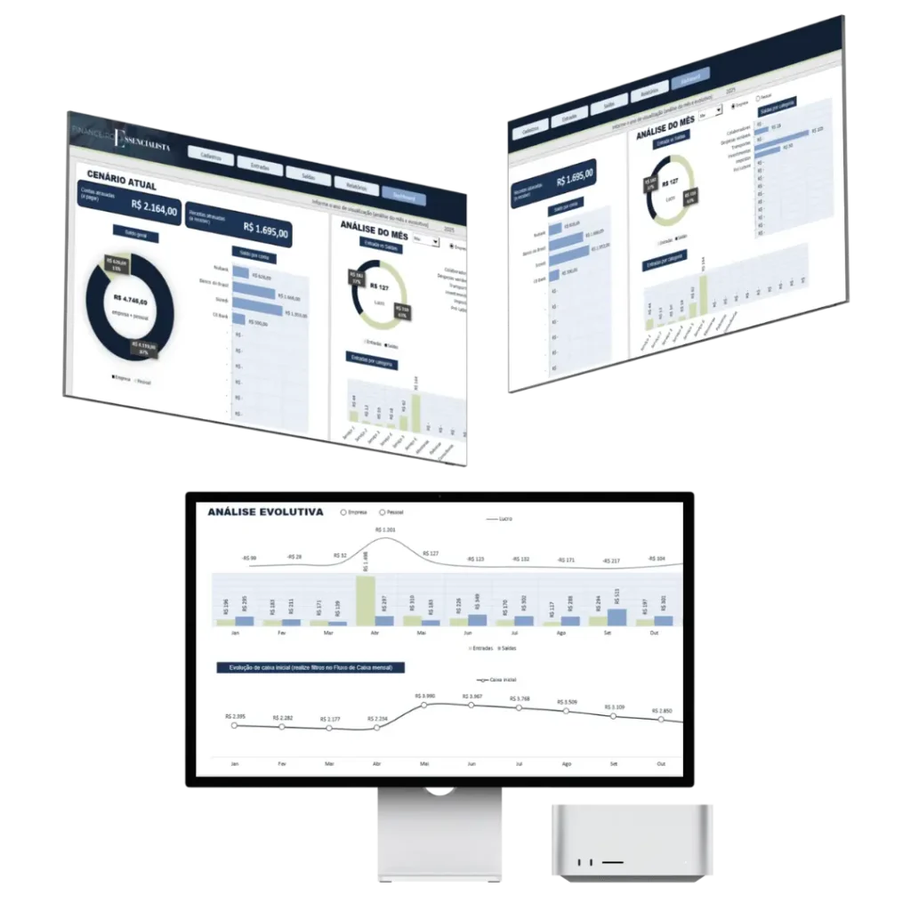 Veja entradas e saídas mês a mês, identifique padrões e tome decisões com base em fatos, não achismos. Acompanhe tudo com dashboards claros e gráficos automáticos.